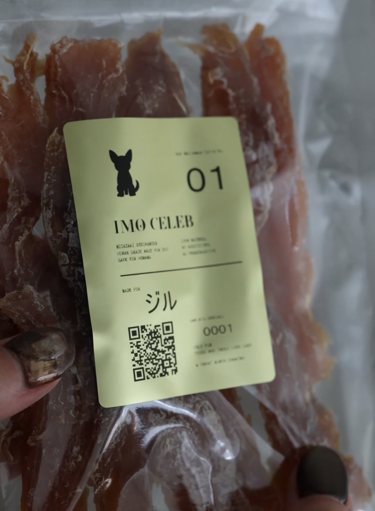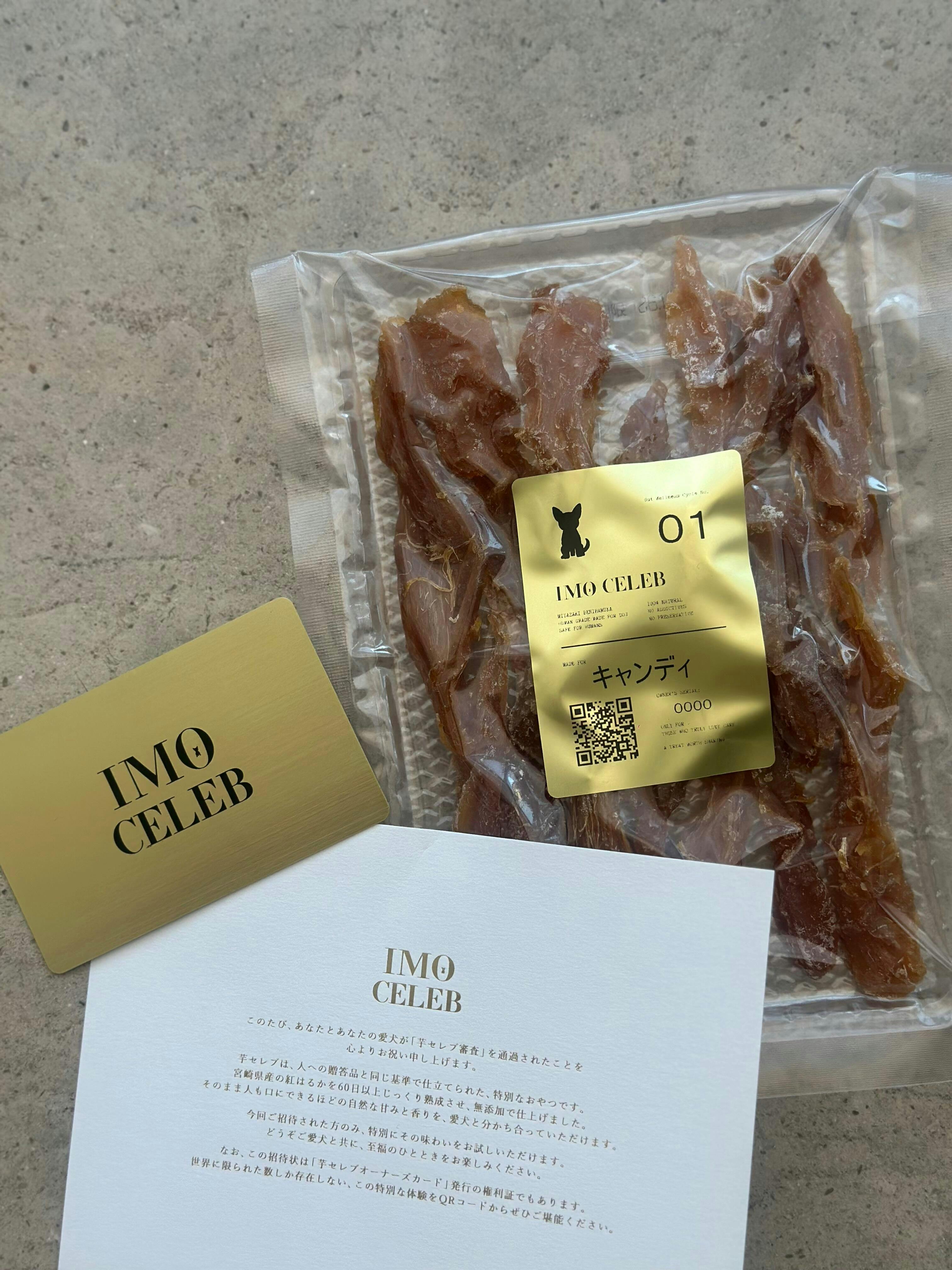 『芋セレブ(IMO CELEB)』は、人間用の高級干し芋を原料にした犬用ギフトブランドです。